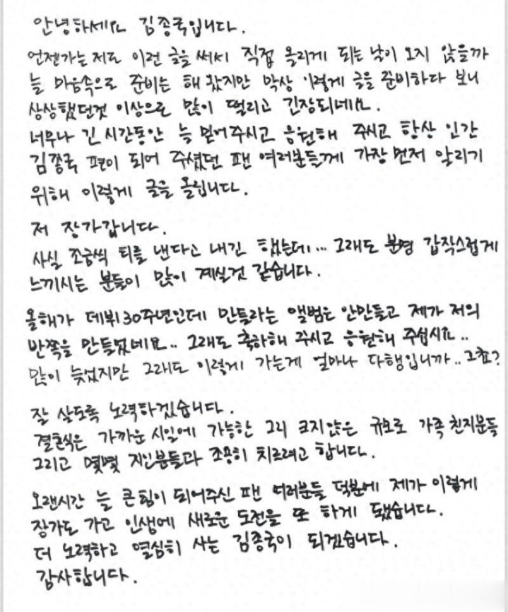 | 还真的在洛杉矶有女友吗? 今年49岁的金钟国在18号无预警官宣结婚,引起不少热议,他随后在官咖上传亲笔信,向所有粉丝宣布自己的婚讯!