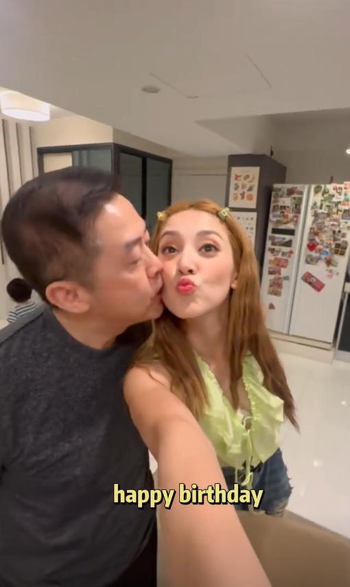 陈凯琳和父亲的父女关系一看就非常亲密,爸爸居然还当着女婿的面,当众亲吻自己的女儿。都说女大避父,女儿都已经35岁了,父女这样亲吻似乎有点太没边界感了。