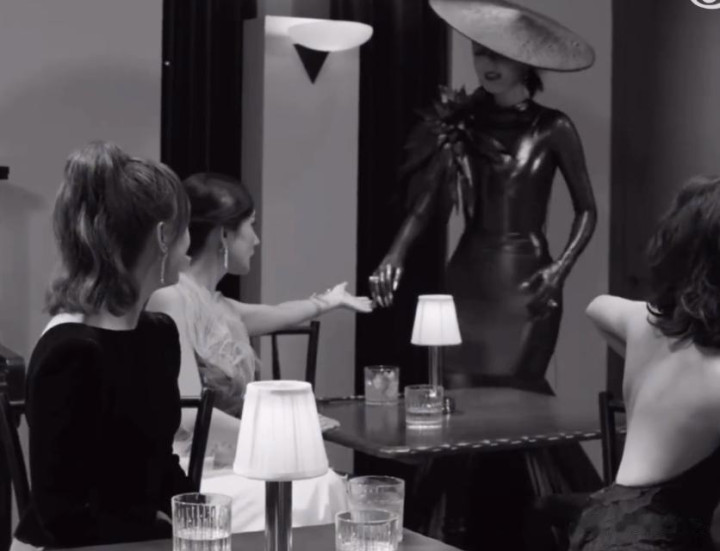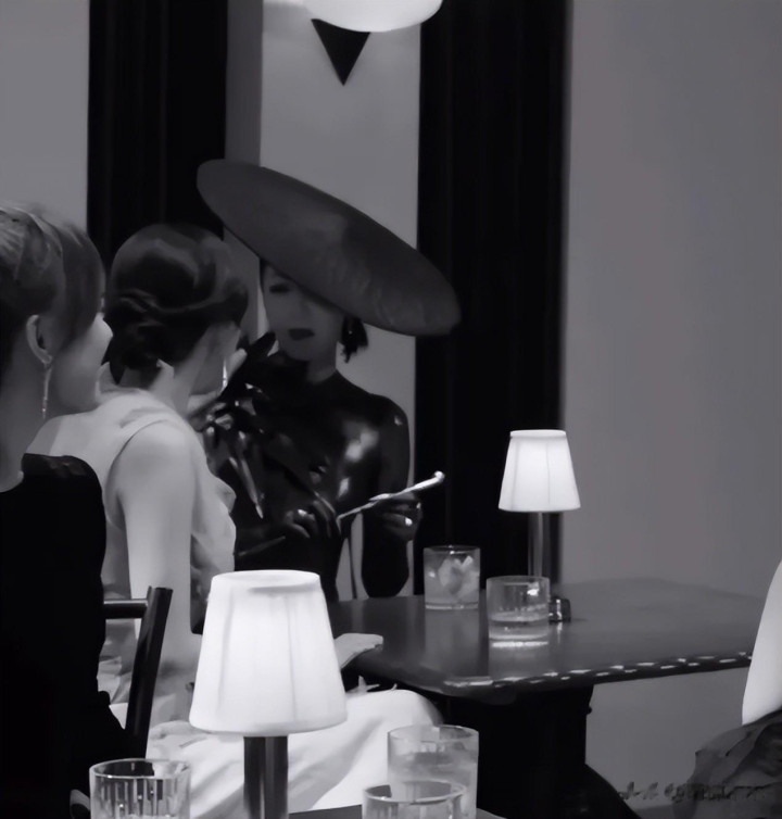 宋佳还给倪妮身后的假人戴墨镜,也是很有设计感了,互动很有爱。
