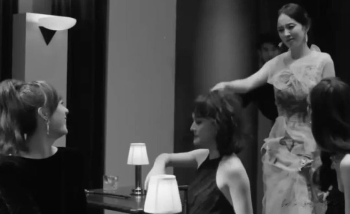 后台的明星坐一桌自然是热聊不断,尤其是辛芷蕾、宋佳和倪妮这桌,镜头扫过三个人就在闲聊,笑得要靠捂嘴来进行表情管理。
