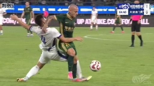 同样在中超第22轮,比赛第65分钟,浙江外援米特里策,手臂击打到天津津门虎后卫杨帆,裁判员未判罚犯规,VAR未介入。对此,天津津门虎俱乐部选择申诉,并认为:米特里策应出示红牌。