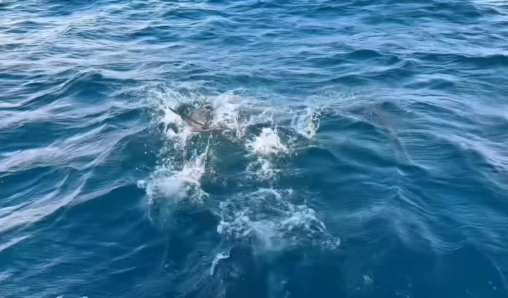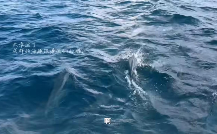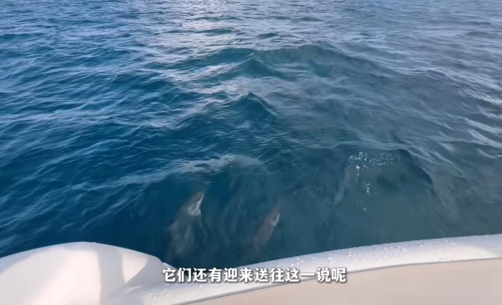 分享完下潜的画面后,关晓彤也曝光她与当地向导一起乘坐游艇出海的镜头,一行人坐在船上前行,关晓彤拿着镜头拍摄海中的画面。 当天关晓彤的运气特别好,出海途中遇到好多海豚“伴行”,它们在水中极速前进,仿佛是在迎接游客的到来。 游艇的速度已经够快了,但依旧难以追上海豚游行的速度,它们时而快速向前,时而冲出海面跳跃,这比在水族馆看到的海豚更加真实、自然。 此情此景,让关晓彤都忍不住惊呼。直言太幸运了。