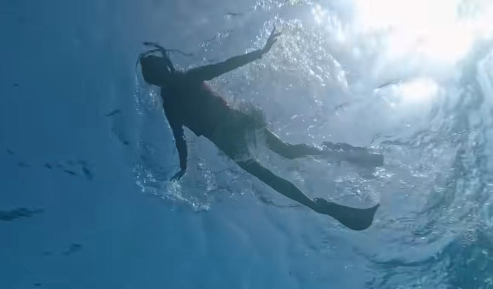 关晓彤在海中潜水的画面也如同一幅美景,纤瘦的身材与修长的四肢在海水的浮力作用下如同“翩翩起舞”,那一双笔直白皙的大长腿格外抢镜,美到让人挪不开眼。 摄影师下潜距离比关晓彤深一些,从下往上拍摄,把关晓彤婀娜多姿的一面彻底展现出来,她就像是海中的“美人鱼”一样,随着波浪的节奏起伏舞动。