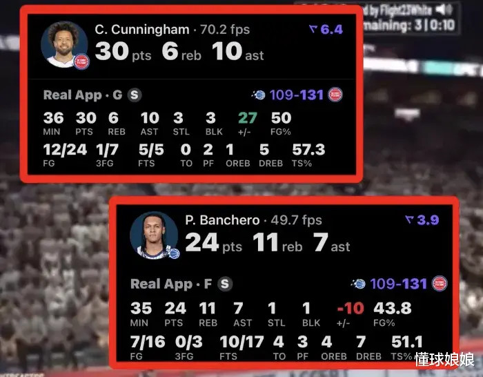 对面今天也是有一个状元的,班凯罗打了35分钟,16投7中,3分球3投0中,罚球17中11,拿到了24分11板7助1断1帽4失误。 因为是前后届的状元,这两人也没少被拿来做对比。 之前有人说康宁汉姆的状元成色不如班凯罗,现在看呢?
