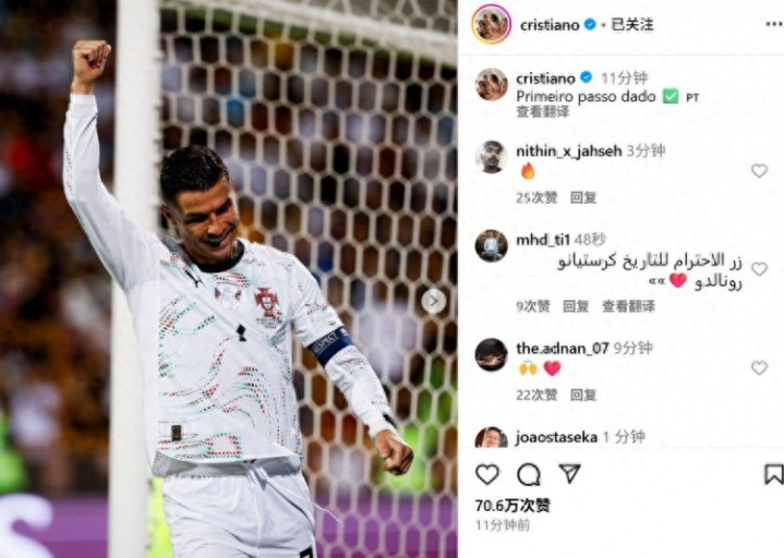 C罗也在赛后通过社媒晒出自己的振臂庆祝照,并配文:“迈出了第一步。” |