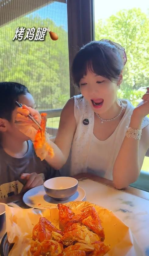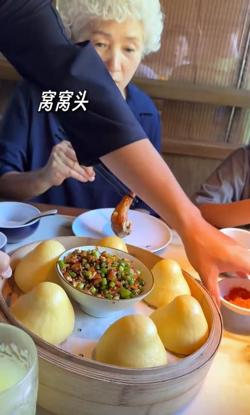 也许是为了照顾前岳母和儿子的口味,高梓淇还点了烤鸡腿。高梓淇还特意点了窝窝头,这应该也前岳母娘和儿子第一次吃这样的窝窝头。